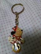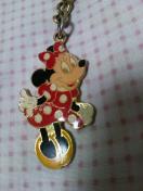 表面は、っゃっやゴ-ルド輝きピカピカして嬉しい〜裏はピカピカなゴ-ルドで東京ディズニランド英文字ロゴ入り〜水玉に赤色フレア-ワンピにお揃いのリボン付けてるミニ-ちゃんが凄く可愛いく楽しぃですね(*^^*)