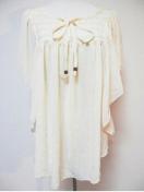 シフォンオフホワイトフリルチュニックトップス丈長めリボンサラッと着心地良い涼しげな2WAY
