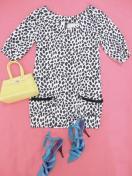 baulettokeyバウレットキーダルメシアンアニマルボートネックワンピース白黒コクーン