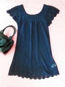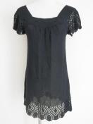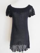 ワールドネイビーカギ編み半袖シースルーチュニックワンピースお食事会パンツにも合うラピス