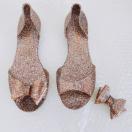 雨の日OKレインサンダルペタンコ3D立体リボンマルチカラーグリッタージェリーノーヒールラピス