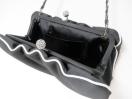 aquagirl購入黒白パイピングスワロフスキーキラキラ金具チェーンポーチハンドバッグクラッチラピスブラックアクアガール