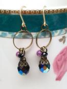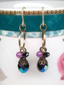 金古美リングオーロラ雫パープルジェットスワロ樹脂フック☆