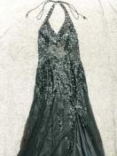 【JEANMACLEAN黒ブラック高級ホルターシースルースパンビーズビジューロングドレス】