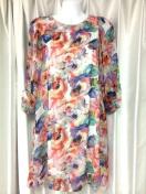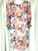 【プレガPREGA新品シフォンシースルー5から7分袖ぼかしボタニカルフラワーワンピースデートオフィス結婚式パーティマギー】