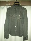 定番人気の音符入りデニムウエスタンシャツ、08SSの顔料染めコーティングが施されたモデルです。タイトなシルエット、胸のジッポ跡などとてもかっこいいデザインです。