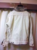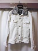 オフホワイトカラーのタイトなシルエットのコーデュロイジャケットで、裏地にはゴージャスにレッキスファーが敷き詰められたスペシャルなモデルです。レッキスはラビットよりも柔らかく、本当に良い肌触りです。もちろん防寒性も抜群で真冬でもカットソー一枚で十分です。