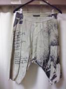 スエードレザー素材のサルエルショートパンツで、全体にラフなプリント加工が施されています。ユリウスらしい独特の立体的なシルエットがとてもかっこいいです。