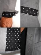 フロントラベル部分にラインストーンを施し裏地には可愛いスカルドットプリントを施しているので袖をまくってスカルドットプリントを覗かせるのもオススメ