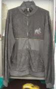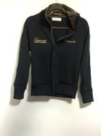 チャコールグレイに後染めしたパイルの切替ジャージです。上下の切替部分にラメパイピングを使用してます。(ゴールド)