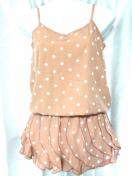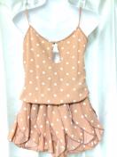 ピンクベージュ白ドットフリルロンパースミニワンピショーパン
