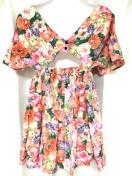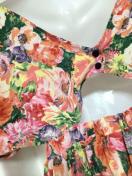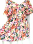 Nomine新品背中開きピンク赤系リゾートフラワー花Vカットワンピノミネ妊婦さんも着れます♪チュニックフレアスカート