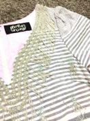 Language新品パーティボーダードレスワンピビーズピンクグレーシルバーキラキラゆらゆら