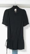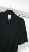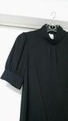シンプルな黒のデザインですが、ウエストが紐で調整出来るリボンや5部袖、首元に付いているボタンが、かわいらしいチュニックになります