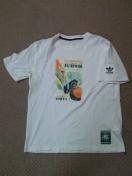 前面にポスターデザイン・左袖に「adidas」マークがあります。