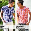 胸ポケット付の花柄トロピカル総柄Tシャツ