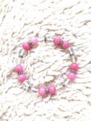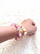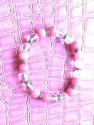 【数珠カラーストーンブレスレットアクセサリーピンククリア透明シルバーラインストーン】