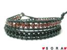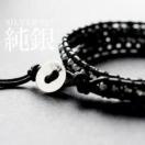 ガーネットとオニキスの2種類の天然石ビーズを革ヒモで1つ1つ編み上げている手の込んだオシャレなデザイン