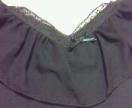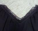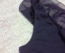 素材表記が有りませんが、本体は収縮性のある生地、カットソーやTシャツに使われてる素材で、襟部分が、シフォン素材、襟ぐりは一周レース使いで、前後共に浅めのVです。