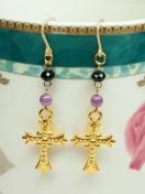 クロスチャームチェコアメジストジェットスワロ樹脂フック☆