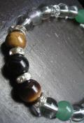 主石は水晶に五黄の黄にタイガーアイ、中央に土星を司るオニキスを配し、寛容さ、他者への優しさを高めるアベンチュリンとフローライトをあわせました。