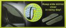 商品説明 ドアミラーレインブロックバイザーAです。ドアミラー本体とミラーの隙間にいれて両面テープで固定します。雨天時のドアミラの視界確保を高めるほかファッション性にも役立ちます。