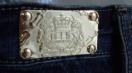 2つのバックポケットには大きな草と王冠&クロス十字架刺繍。