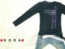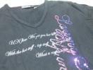 ラグジュアリーなデザインのグラデーションスパンコール×ラメロゴ刺繍プリントVネックロングTシャツ