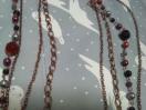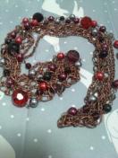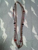 これは四連のロングネックレスで、左右対象です、一枚めの写真とおり、実際チェーンはマットないろで赤などは、輝きがいろんな角度ででます!オールシーズンつかえて、あまりおもくないし、高級感があり、かなりオシャレです!はげるタイプではないので、長い間綺麗につかっていただけます!新品同様美品で、かなり綺麗です!胸のしたくらいのロングです!