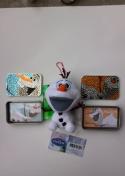 アナと雪の女王オラフマスコットキーホルダー及びデコ缶ケース付、メモ帳*2