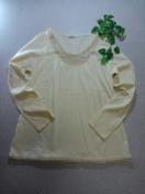 襟元、裾にカギ針編みレースが施された長袖カットソー♪