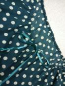 ダークグリーンにホワイトドット柄が可愛いスモックワンピースです♪
