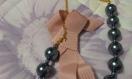 画像にて確認いただけますが、リボンは縫い付けてありますが、外してシンプルなパールネックレスとしてお使いいただけます。