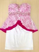 【an白レースピンクペプラムベアワンピドレスビジューパール花フラワー】