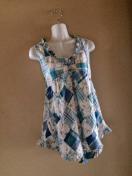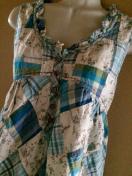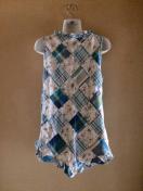 ハンドメイド風、丁寧に繋ぎあったパッチワークがおしゃれで、爽やかなブルー系、夏に素敵なチュニです。