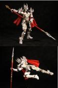 拡大(首、肩、胴、股、足首)を造形が損なわれない範囲で行いました。また顔などの塗装、金色でのスミ入れを行いました。