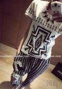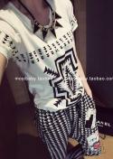 ★千鳥格子タイトプリント付パンツに、マヤ幾何学模様Tシャツを