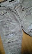 ベースのグレー系から全体にダスト加工&クラッシュ加工がされたクロップドパンツ。