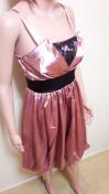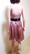 [商品情報] 胸元レースタックにくしゅAバルーンが綺麗なパーティードレスです。色:光沢ローズ サイズ:F 平置き⇒胸元幅36cm、脇下からの着丈72cm、ウエスト34.5cm、裾幅90cm 素材:ポリエステル ファスナー:背 パット:あり 他:新美品です。