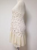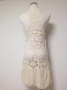 【オフホワイトベージュSHAKESHAKEシェイクシェイクフラワーカギ編みクロシェシフォンミニワンピースチュニックフレアタンク新品】