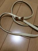 真っ白ではなく少しベージュぽいキナリです。リボンはゴールド少し汚れあります。
