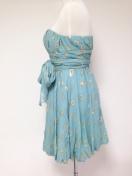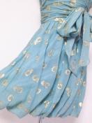 【BCBGMAXAZRIAエメラルドグリーンゴールドキラキラギャザーベアドレスワンピースバルーンフレアリボン】