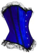濃いめの青いサテンのとても豪華なコルセットです。青地と黒のリボンがクールな感じでセクシーです。