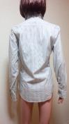 [商品情報] メタル釦&鋭い衿カットにウエストシェイプがSexyなマルチSTのシャツです。ブランド:シュリセル サイズ:2 平置き⇒肩幅43cm、胸元幅49cm、着丈70cm、袖丈62cm、ウエスト44.5p、裾幅47.5p 素材:コットン/ナイロン ストレッチ:あり 他:着用の少ない綺麗なお品です。