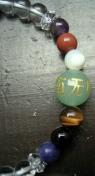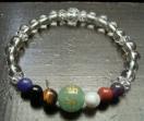 主石の水晶に南無阿弥陀仏彫アベンチュリンを中央に、色石を7色合わせました。