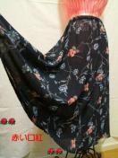 スカートはウエスト総ゴムのフレアーロング