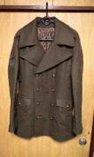 上品なカーキカラーでカシミヤ混紡メルトンウール地を使用しミドル丈に仕上げたPコートです。