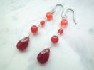 オレンジから赤へ、グラデーションになるようにつないだピアスです。