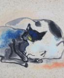 洋画家 小林哲夫 画伯作 日本画4号「猫」 本物保証。