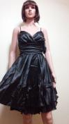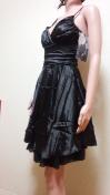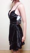 〓[商品情報] 胸元カシュクール×AフリA&裾透かしレイヤードの綺麗なミニドレスです。 色:光沢黒 サイズ:F 平置き⇒胸元幅36cm、脇下からの着丈65-71cm、ウエスト28.5cm、裾幅114cm 素材:ポリエステル ストレッチ:あり ファスナー:背 パット:あり 他:新品タグ付きです 。